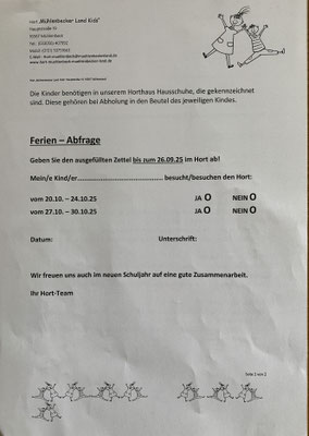ob Ihr Kind in den Sommerferien den Hort besucht.